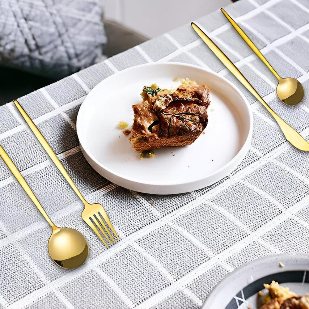 - Start your banquet in style with our 24-Piece Gold Stainless Steel Cutlery Set that includes (6 Fork + 6 Knife + 6 Large Spoon + 6 Small Spoon)