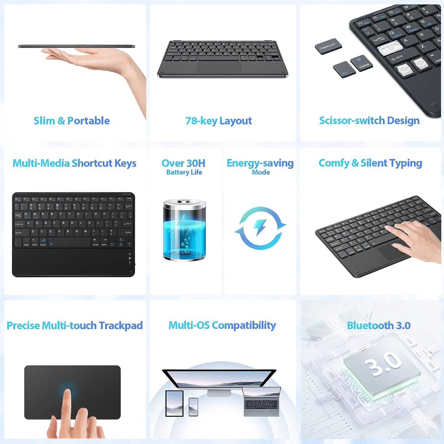 Blackview K1 Bluetooth Keyboard with Touchpad, Ultraslim Ultralight Ergonomic Design, Universal Tablet Keyboard QWERTY Layout, Wireless Keyboard for iOS, Android, Windows
