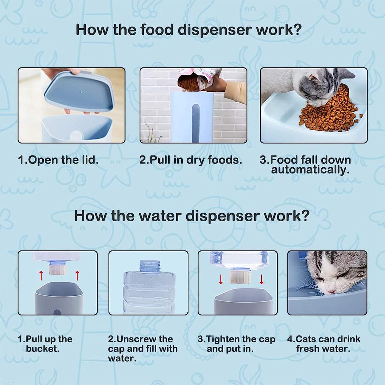 - Feeder: Unscrew the top lid, pour pet food into the extra-wide-mouth hopper.