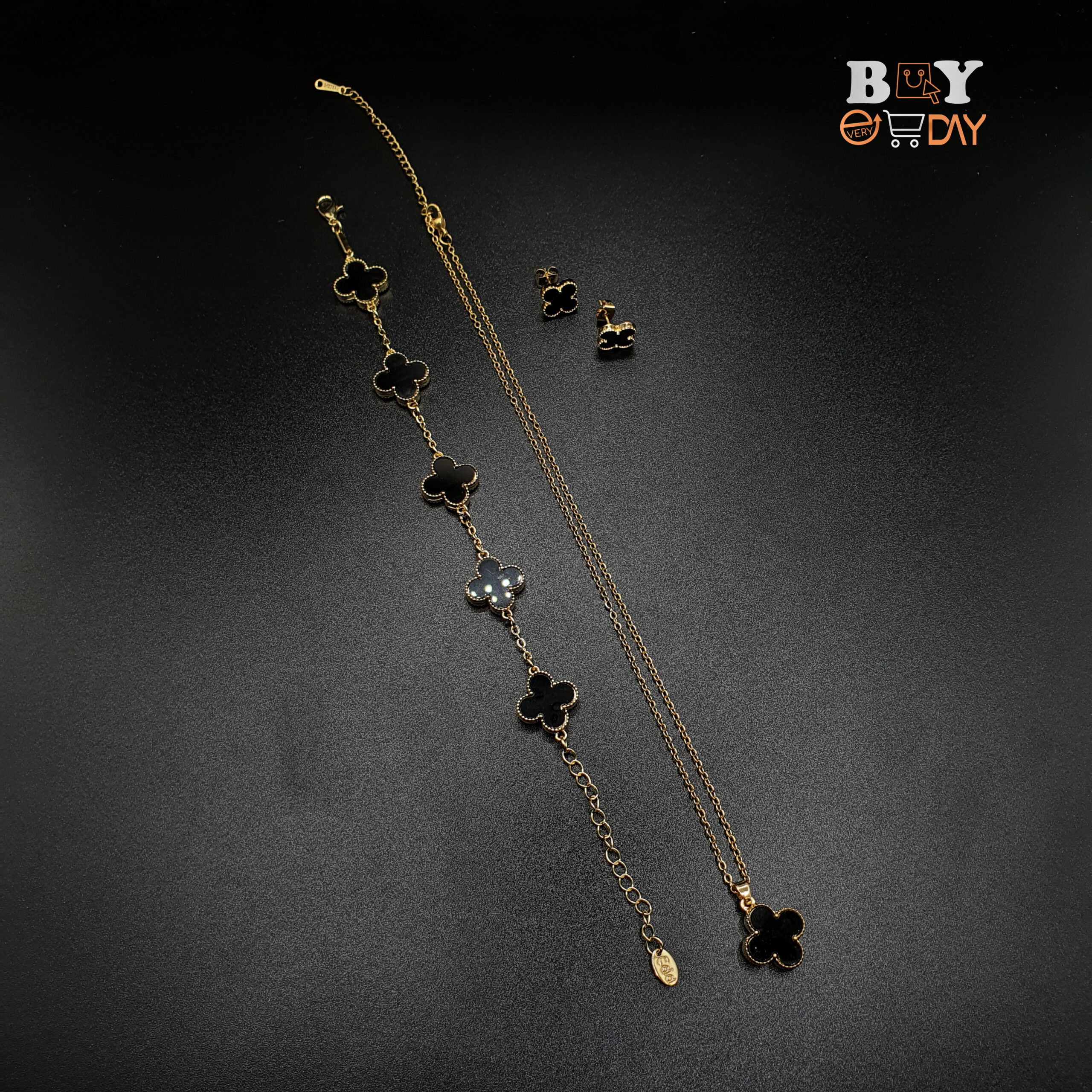 Experience the epitome of sophistication with our luxury clover jewelry set. This exquisite collection features high-quality flowers intricately designed into an elegant necklace, striking earrings, and a stylish bracelet, all tailored for the modern woman.