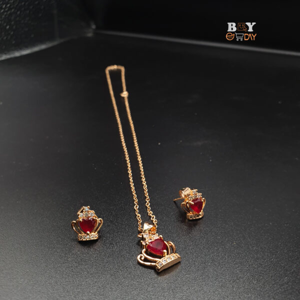 The pendant features intricate detailing that captures the essence of a crown, while the earrings are designed to gracefully frame your face. Made with high-quality materials, this set promises durability and timeless charm.