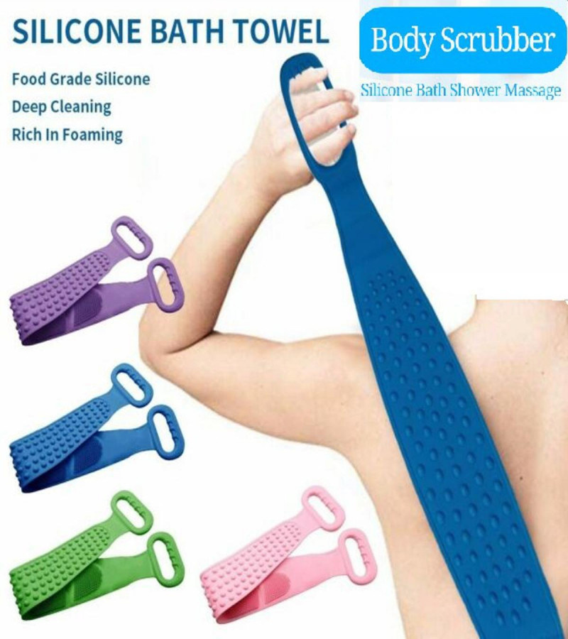 Silicone Back Scrubber Belt – Dual-Sided Exfoliating and Massage Tool-Removes Bath Towel)