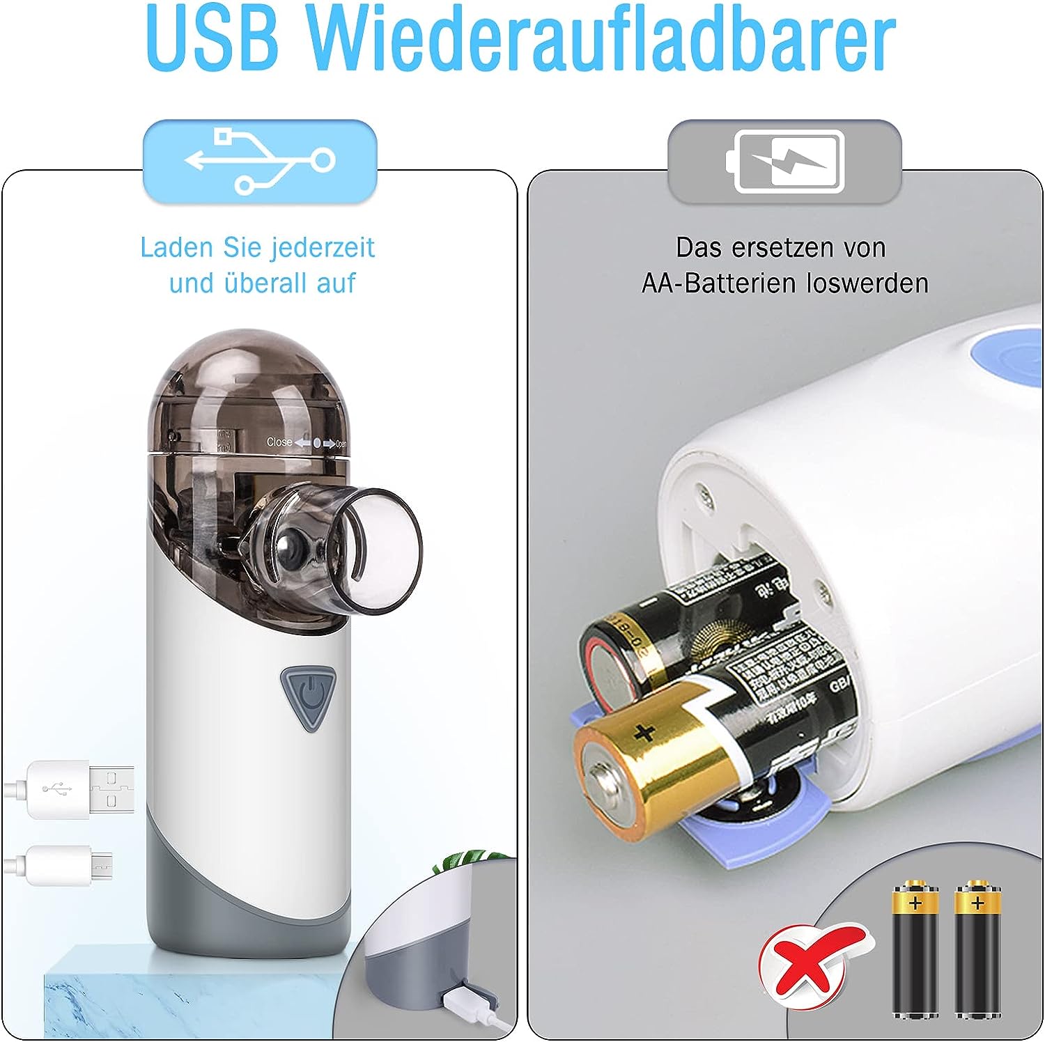This handy mesh nebuliser comes with USB recharging capabilities, ensuring you can readily power it up with any USB-compatible device. Its grey color provides a sleek and modern look, making it a stylish addition to your healthcare routine.
