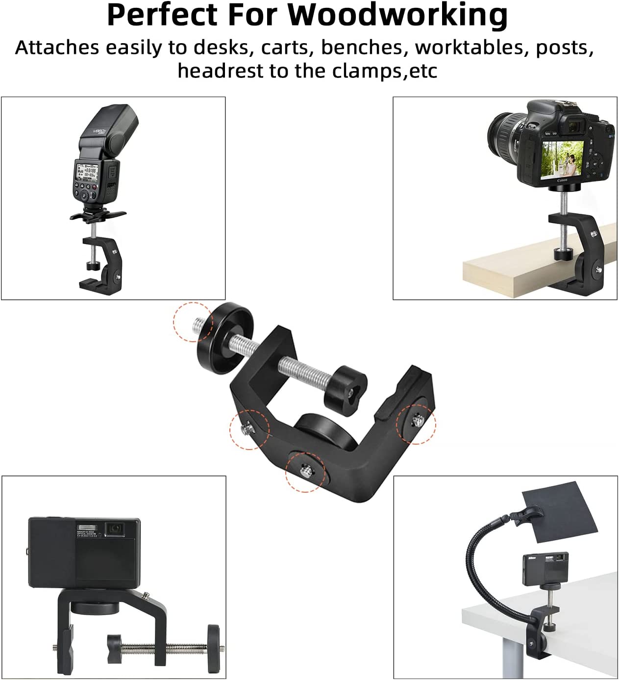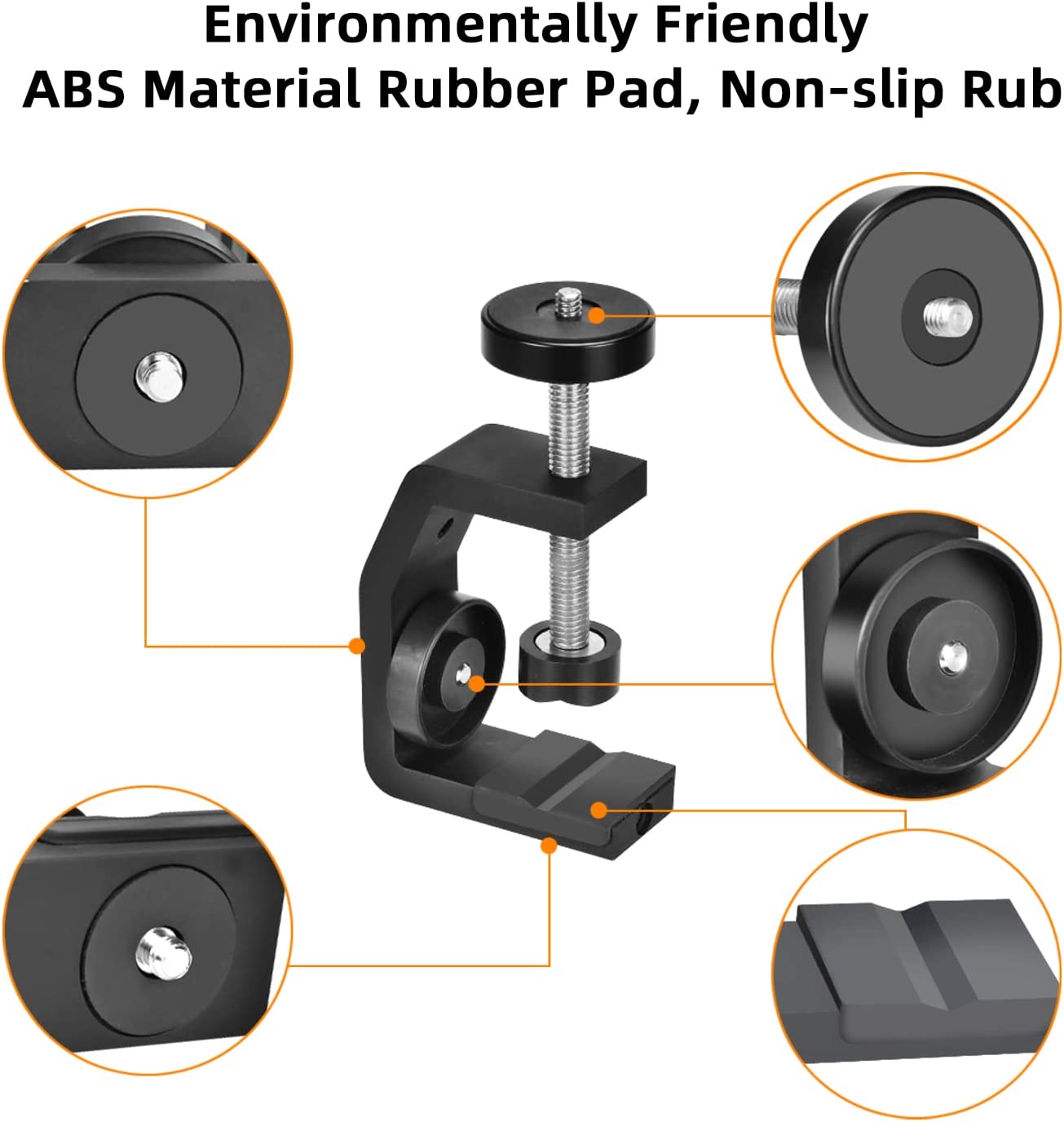 • Adjustable C Clamp Jaw: Expands up to 2.36 inches (60mm), fitting desks or tubes up to 60mm in thickness.
